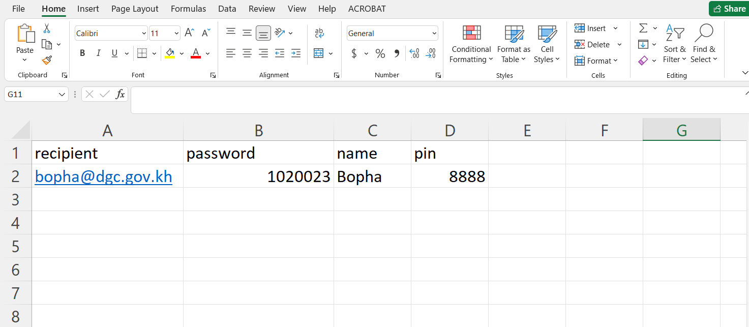 Add in a new column in your CSV file call password and include passwords that the recipients would know. For example, the password can be the last four characters of NRIC and last four digits of the phone number (212A8888).